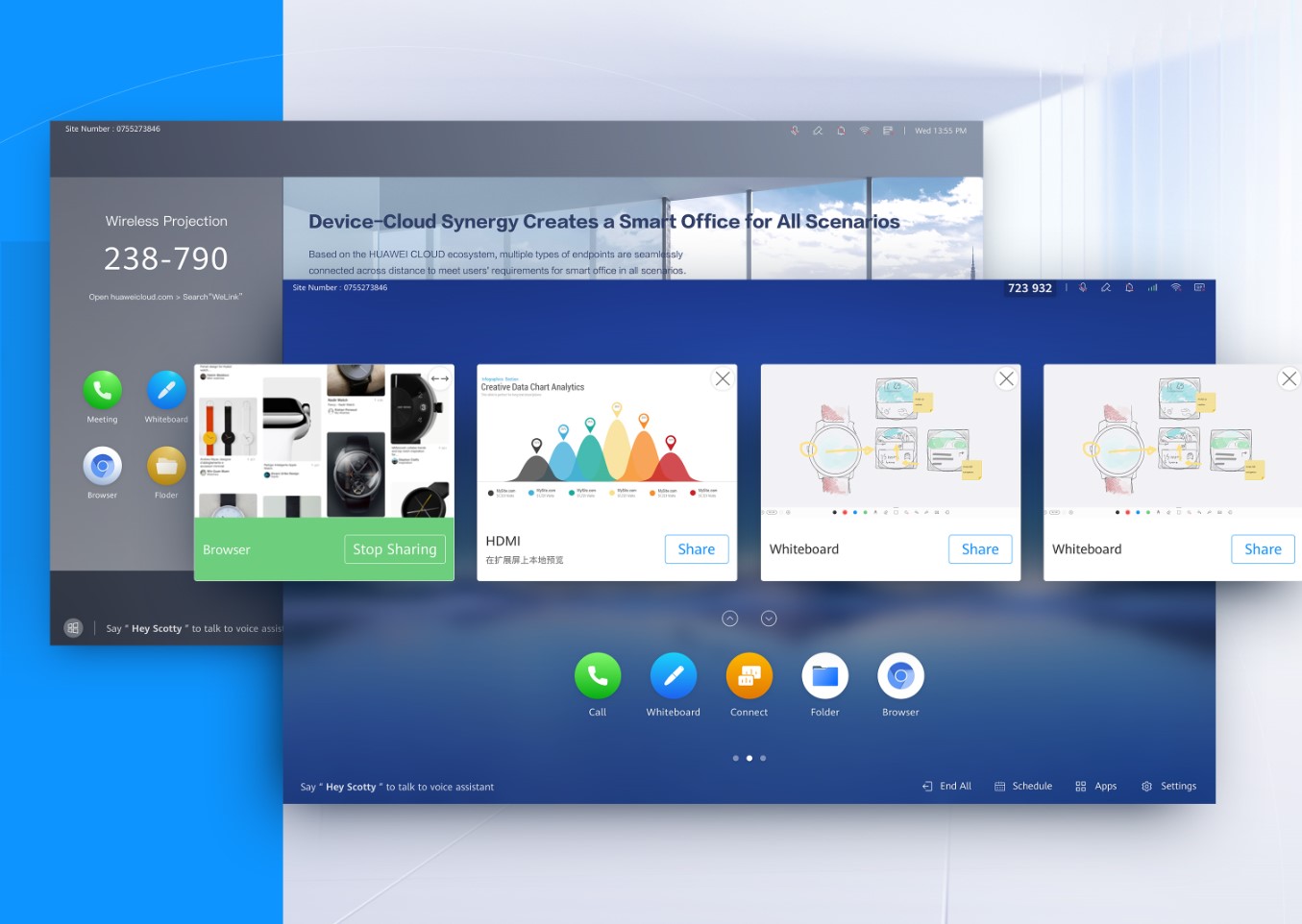 秉承華為「把簡單留給客戶,把復(fù)雜留給自己」的理念,華為企業(yè)智慧屏將簡單的智慧融入到產(chǎn)品設(shè)計(jì)當(dāng)中,讓智慧辦公更加簡單高效。華為企業(yè)智慧屏集智能書寫、極清投屏、視頻會議、開放辦公應(yīng)用市場為一體,是面向企業(yè)團(tuán)隊(duì)協(xié)作的新終端品類。華為企業(yè)智慧屏創(chuàng)造性的將真實(shí)空間中的記事墻、辦公區(qū)、休閑區(qū),轉(zhuǎn)化為虛擬空間的負(fù)一屏、首頁、應(yīng)用程序三屏內(nèi)容。在體驗(yàn)上減少用戶學(xué)習(xí)成本,幫助用戶快速上手。扁平的體驗(yàn)架構(gòu)幫助用戶在不同應(yīng)用和服務(wù)之間平滑切換,極簡的界面設(shè)計(jì)操作更加便捷,滿足用戶從工作到生活的各種需要。