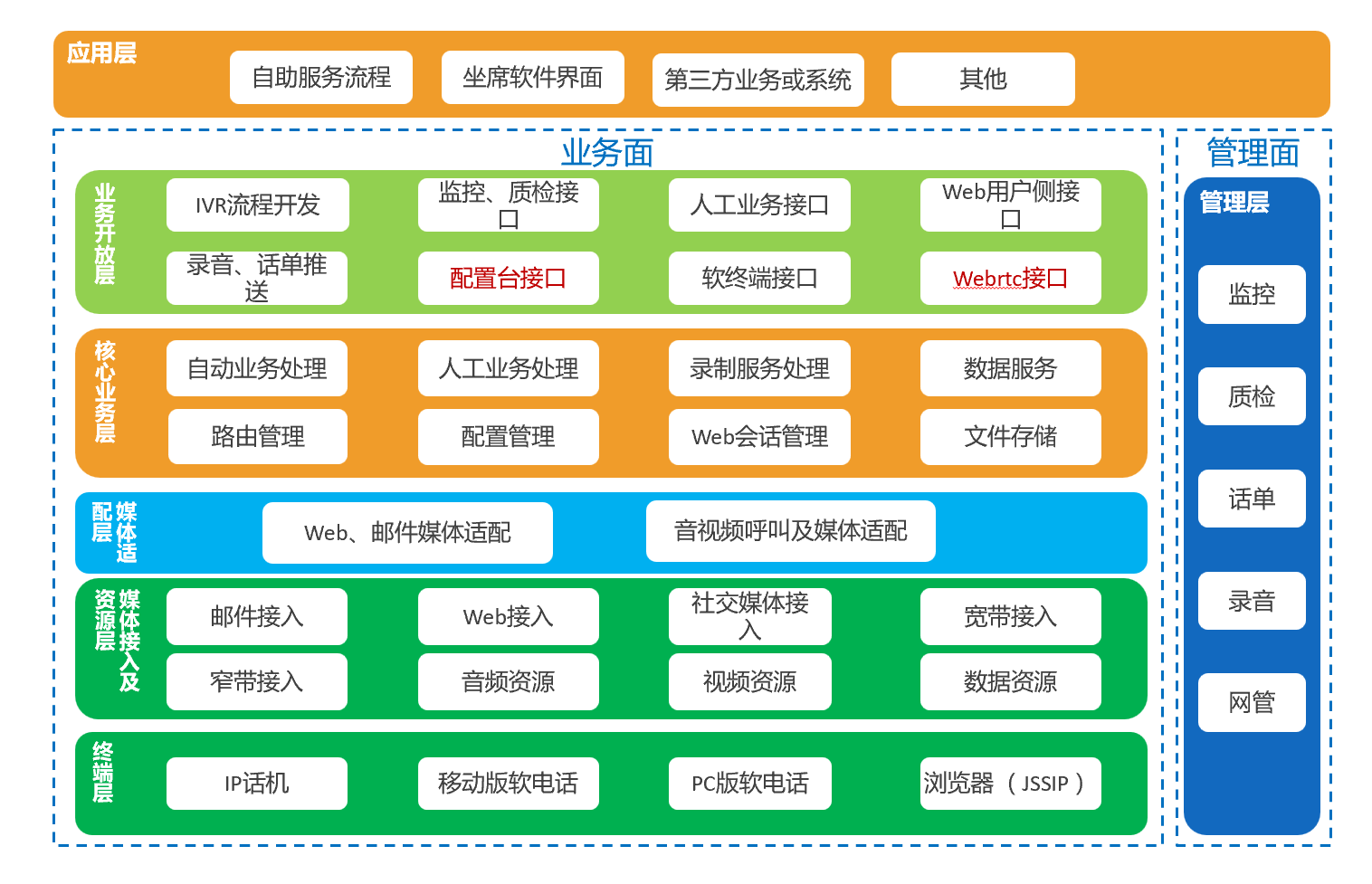 支持多種接入方式,E1、SIP、WebRTC、VoLTE接入;