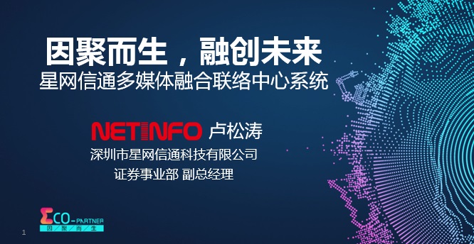證券事業(yè)部副總經(jīng)理盧松濤先生,具備十六年證券金融、企業(yè)大型聯(lián)絡(luò)中心項(xiàng)目建設(shè)顧問(wèn)咨詢(xún)經(jīng)驗(yàn),具有豐富的聯(lián)絡(luò)中心系統(tǒng)規(guī)劃、設(shè)計(jì)、建設(shè)及運(yùn)維經(jīng)驗(yàn),將代表星網(wǎng)信通公司做主題為《因聚而生,融創(chuàng)未來(lái)》的公開(kāi)演講。